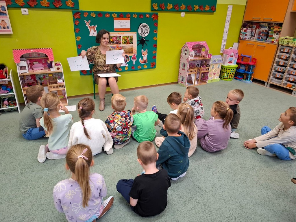 W ramach tej akcji przedszkolaków odwiedziła Pani Danuta Wrona - nauczycielka języka polskiego, bibliotekarka, która jak zwykle przygotowała wiele ciekawych niespodzianek. Dzieciaki w skupieniu i zaciekawieniu wysłuchały książki M. Bryczyńskiego, L. Głazewskiej-Dańko pt. „Jedna chwilka uczuć kilka czyli z uczuciem o uczuciach”, która pozwoliła najmłodszym utrwalić wiedzę związaną z nazywaniem i rozpoznawaniem emocji.