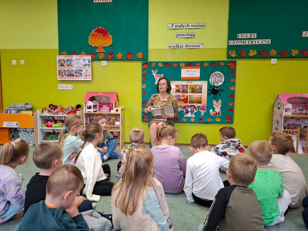 W poniedziałek 29.09.2025r, w grupie IV Słoneczka obchodziliśmy Ogólnopolski Dzień Głośnego Czytania. To dzień, który stwarza kolejną okazje do wprowadzenia przedszkolaków w magiczny świat bajek, opowiadań i wierszy. Celem akcji jest promowanie głośnego czytania dzieciom, nabywanie przyjemności z czytania i słuchania, a także poczucia przynależności do społeczności czytelniczej.