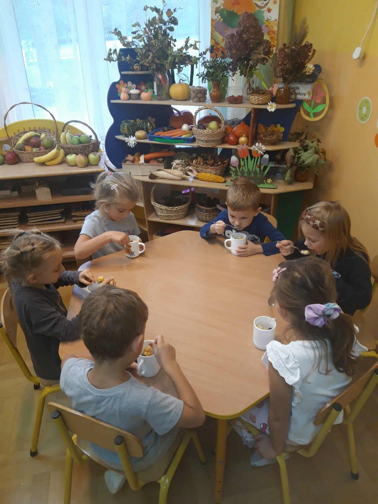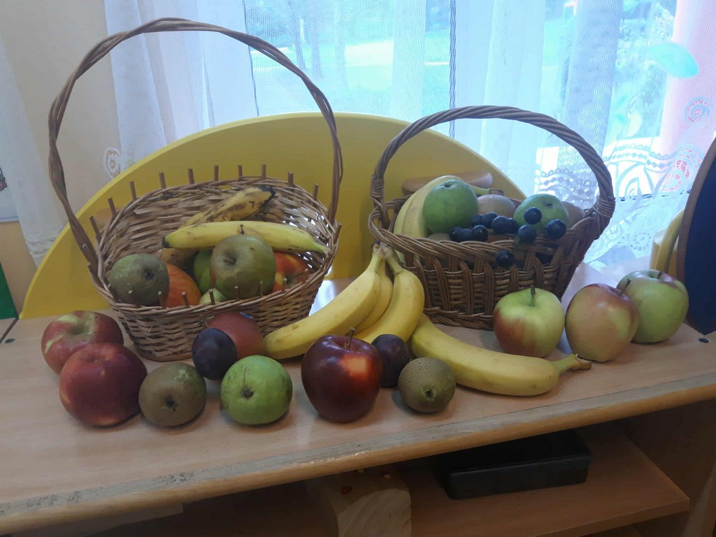 Nadeszła Jesień, a wraz z nią zagościły u nas w przedszkolu tematy związane z owocami i warzywami. Przedszkolaki z grupy II (,,Pszczółki") podczas zajęć dowiedziały się jak ważne jest spożywanie owoców i ich przetworów jako źródła witamin koniecznych dla prawidłowego rozwoju. Ubogacone w tę wiedzę  przedszkolaki postanowiły wykorzystać jesienne dary przyrody i przygotować pyszną i zdrową jesienną sałatkę owocową. Znalazły się w niej głównie te owoce, które można zebrać w naszych sadach i ogrodach.