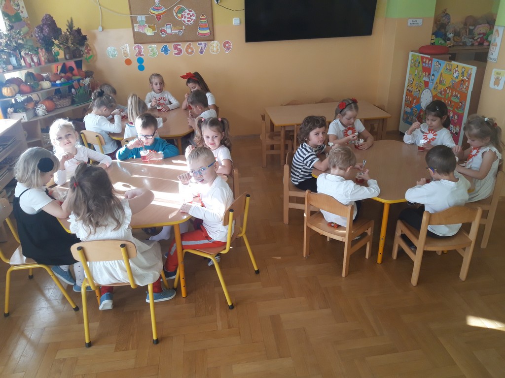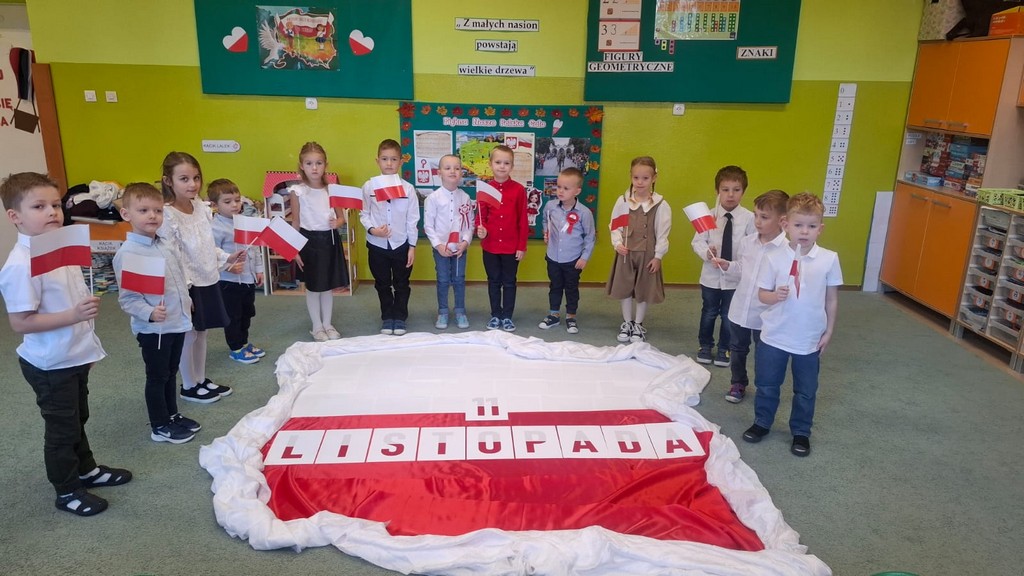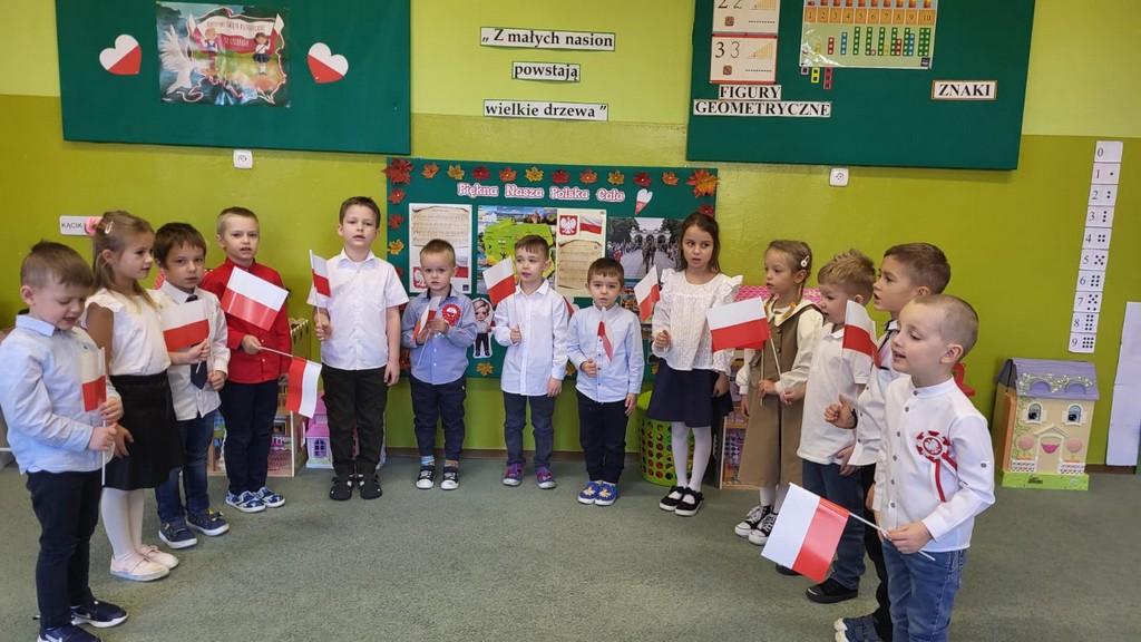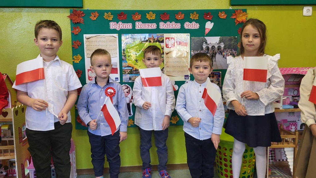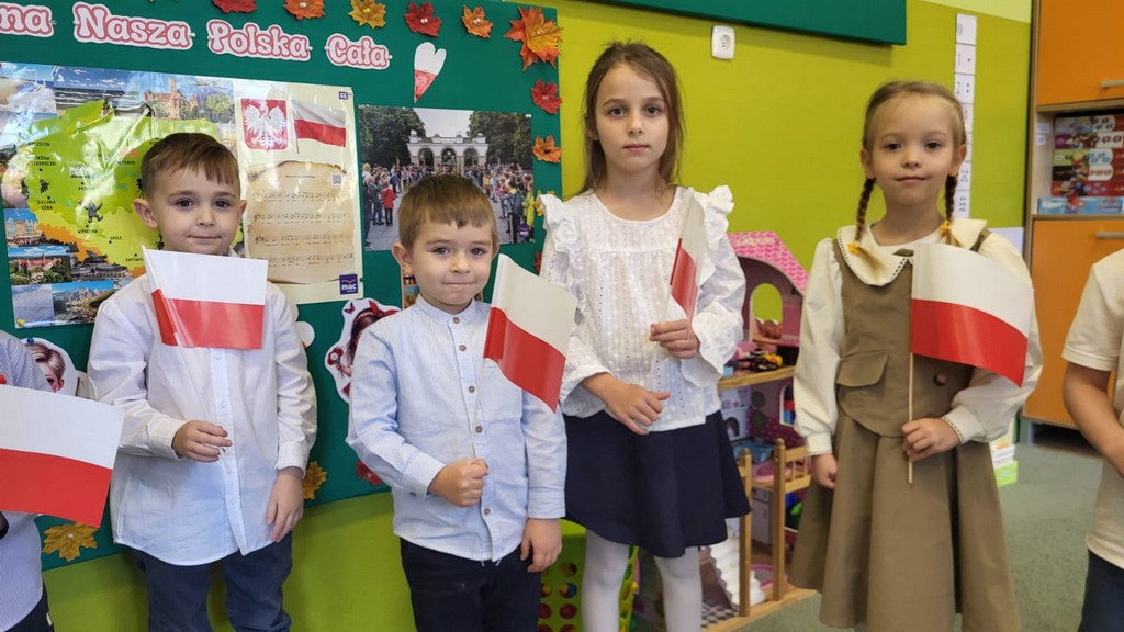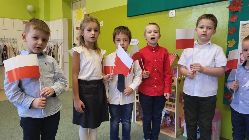 Z okazji ogólnopolskiej akcji „Szkoła do hymnu” dzieci z naszego przedszkola punktualnie o godzinie 11:11 z dumą odśpiewały „Mazurka Dąbrowskiego”. Wydarzenie to było dla wszystkich ważną lekcją patriotyzmu i szacunku do symboli narodowych. Przedszkolaki, ubrane w odświętne stroje z zaangażowaniem uczestniczyły w tej uroczystej chwili, okazując radość i dumę z bycia częścią wspólnoty narodowej.