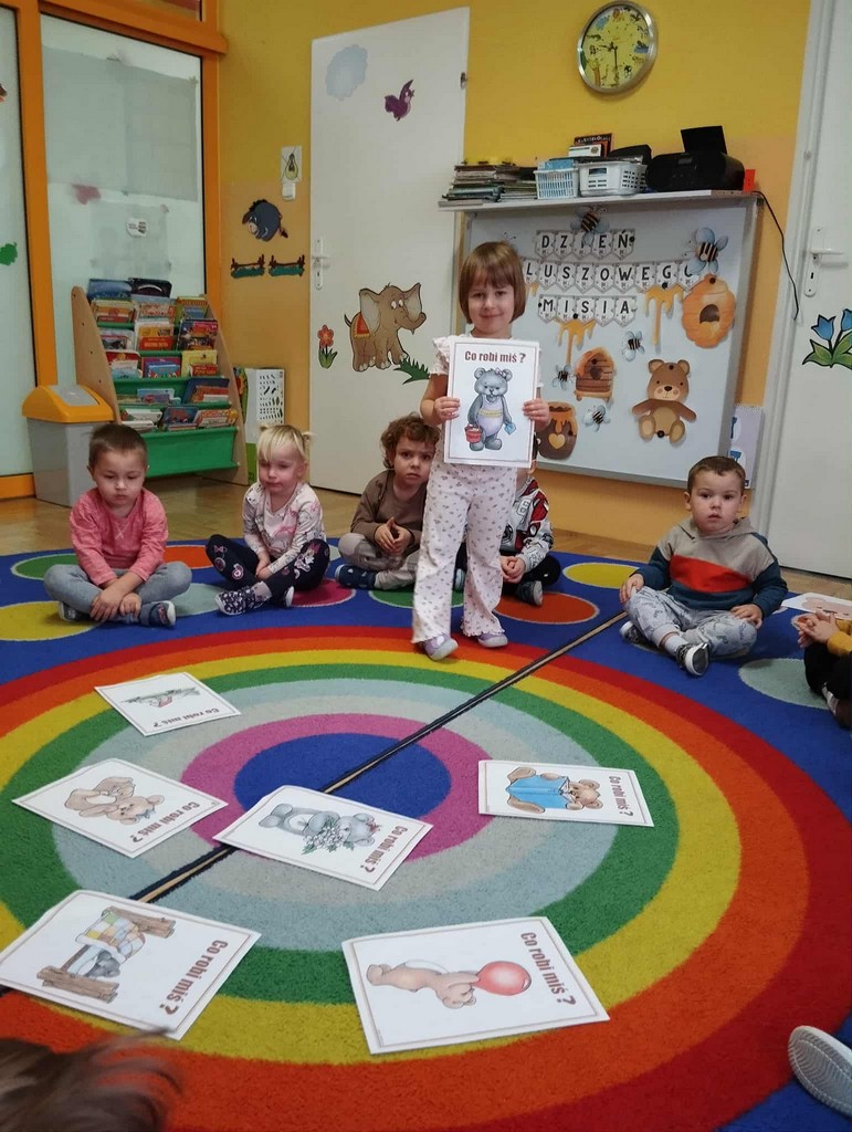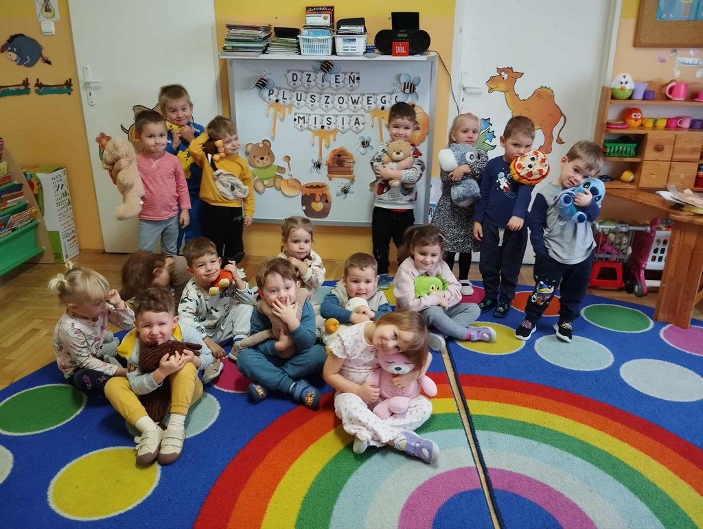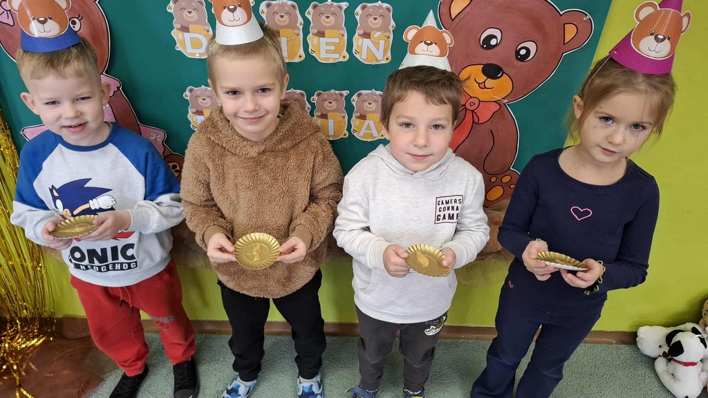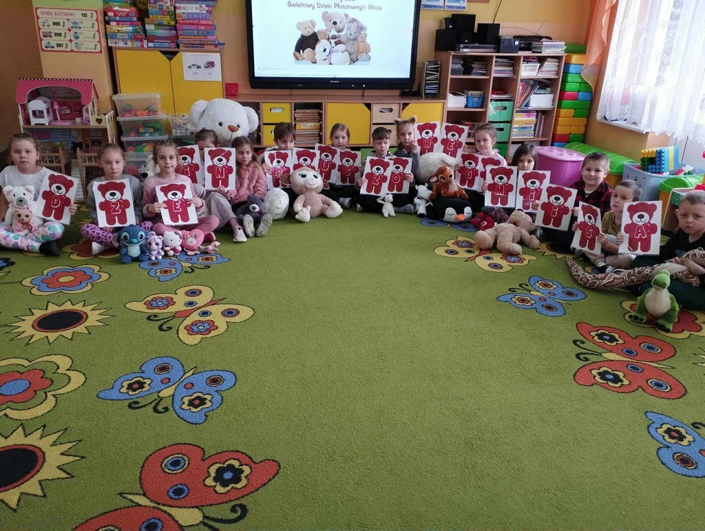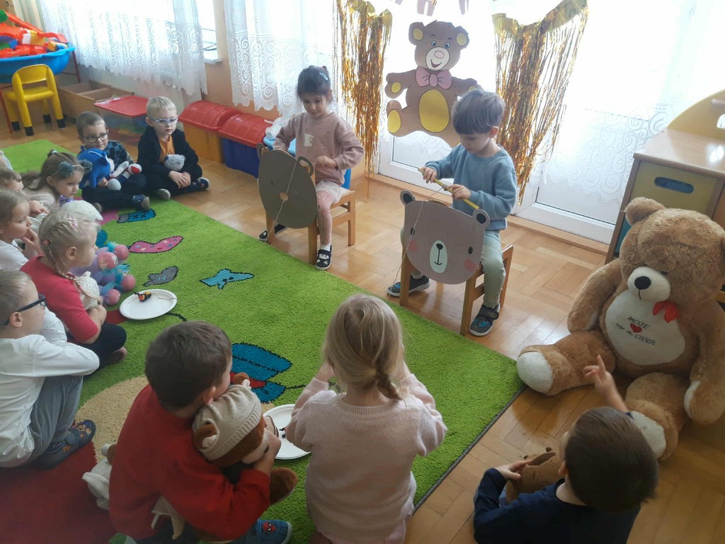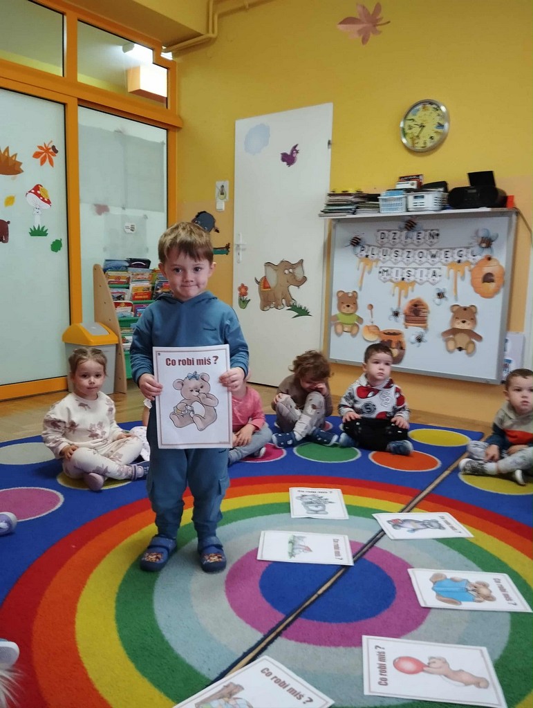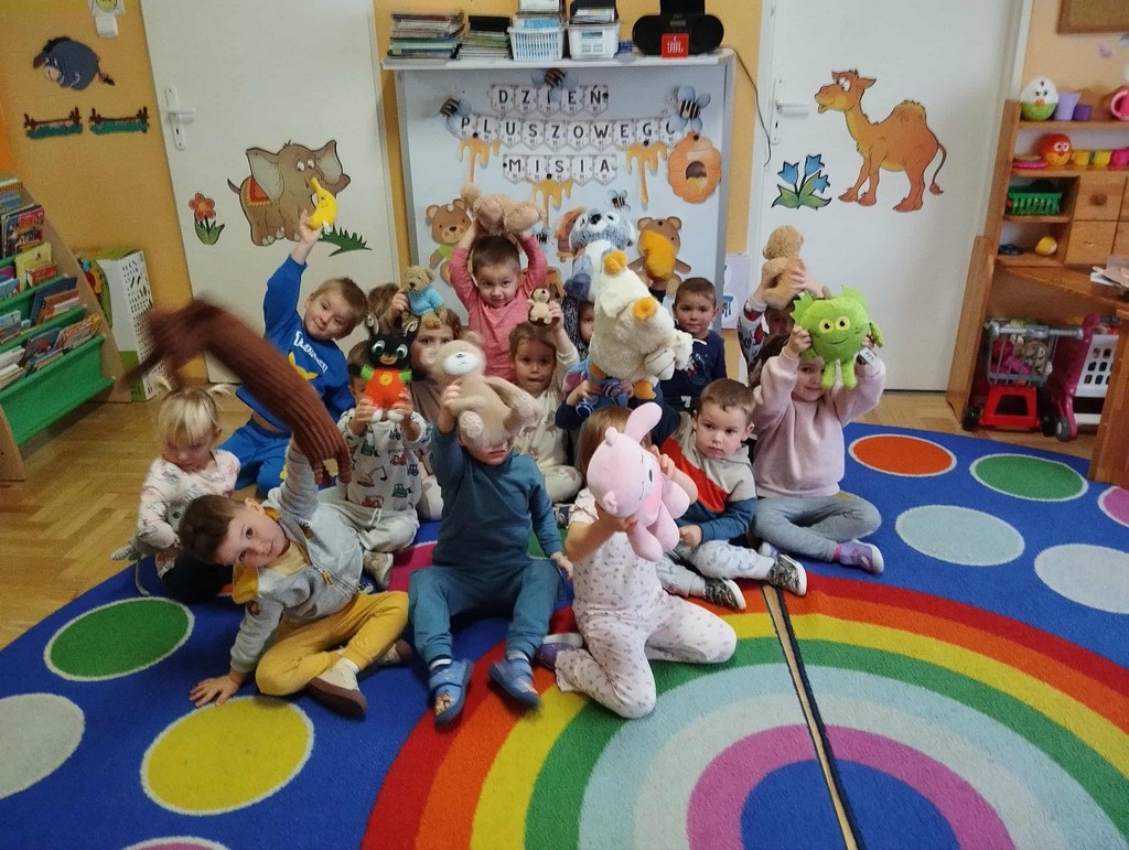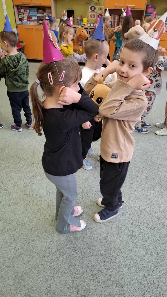 25 listopada tradycyjnie obchodziliśmy „Dzień Pluszowego Misia”. Dzieci przyniosły do przedszkola swoje ukochane pluszaki, a każdy z nich był inny i wyjątkowy. Misie towarzyszyły dzieciom podczas śpiewania piosenek, słuchania tekstów literackich, rozwiązywania zagadek, oglądania bajek. Wśród wielu atrakcji zaplanowanych na ten dzień znalazły się; konkursy, zręcznościowe tory przeszkód, zabawy ruchowe oraz taneczne przy utworach z misiami w roli głównej. Największym jednak wyzwaniem dla dzieci było samodzielne przygotowanie torcików. Biszkoptowe ciasteczka specjalnie upieczone na tę okazję, zostały udekorowane bitą śmietaną, owocami, żelkami oraz kolorową posypką. Torciki nie tylko wyglądały pięknie i kreatywnie, ale smakowały wyśmienicie. Mamy nadzieję, że misiowe przyjęcie pozostanie we wspomnieniach przedszkolaków na długi czas.