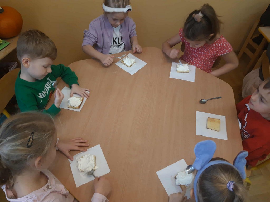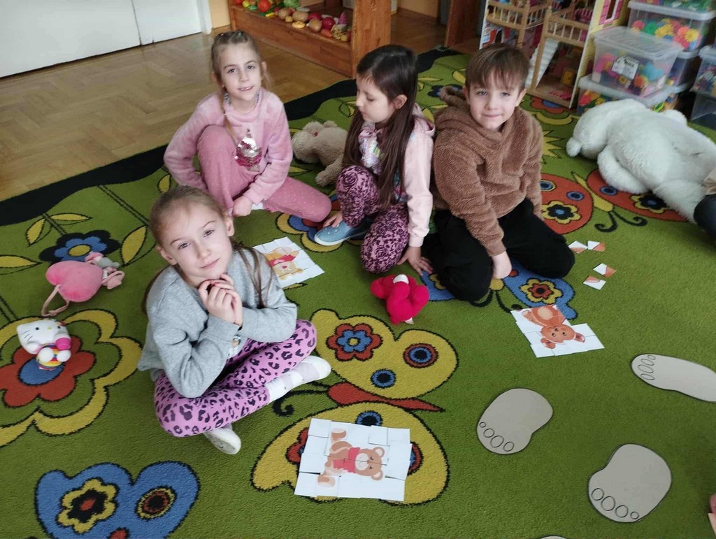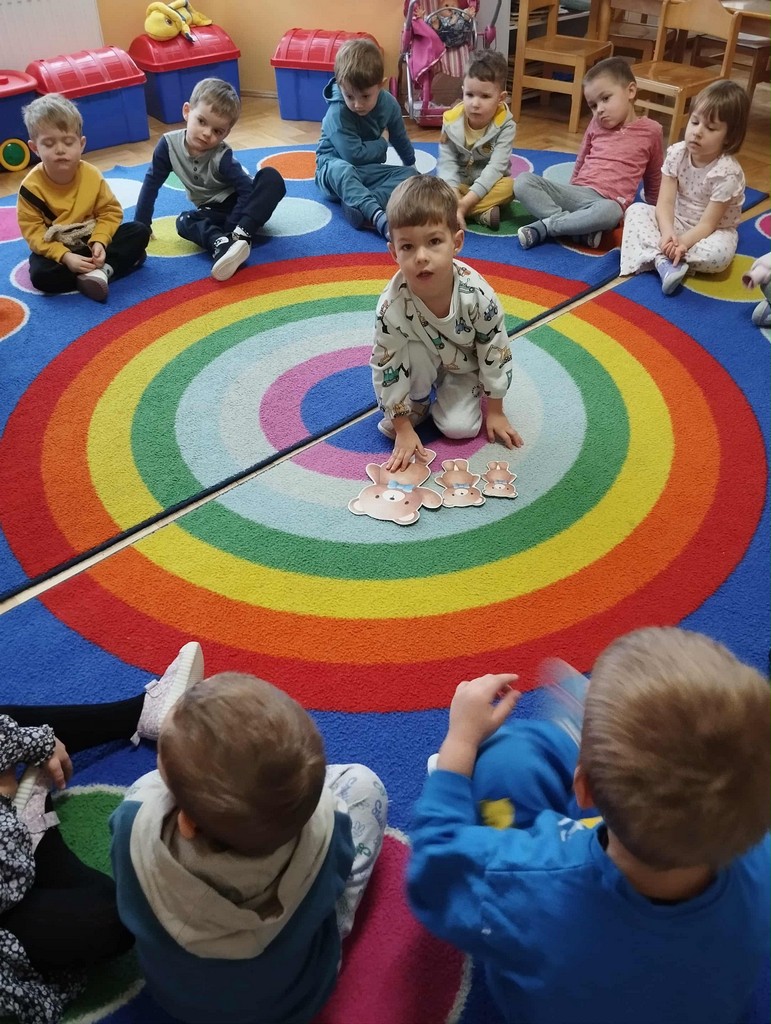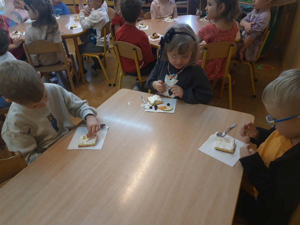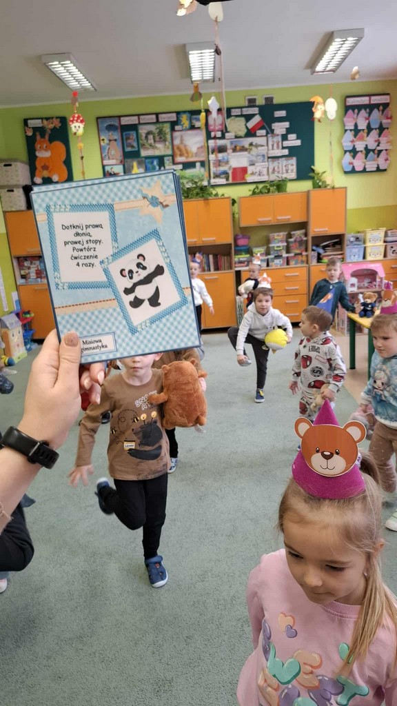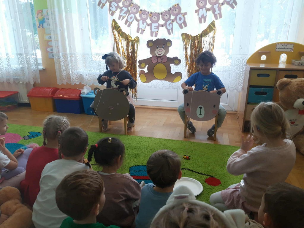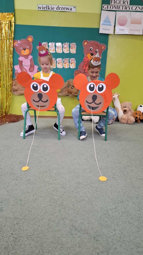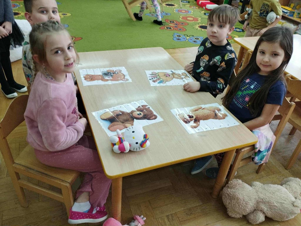 25 listopada tradycyjnie obchodziliśmy „Dzień Pluszowego Misia”. Dzieci przyniosły do przedszkola swoje ukochane pluszaki, a każdy z nich był inny i wyjątkowy. Misie towarzyszyły dzieciom podczas śpiewania piosenek, słuchania tekstów literackich, rozwiązywania zagadek, oglądania bajek. Wśród wielu atrakcji zaplanowanych na ten dzień znalazły się; konkursy, zręcznościowe tory przeszkód, zabawy ruchowe oraz taneczne przy utworach z misiami w roli głównej. Największym jednak wyzwaniem dla dzieci było samodzielne przygotowanie torcików. Biszkoptowe ciasteczka specjalnie upieczone na tę okazję, zostały udekorowane bitą śmietaną, owocami, żelkami oraz kolorową posypką. Torciki nie tylko wyglądały pięknie i kreatywnie, ale smakowały wyśmienicie. Mamy nadzieję, że misiowe przyjęcie pozostanie we wspomnieniach przedszkolaków na długi czas.