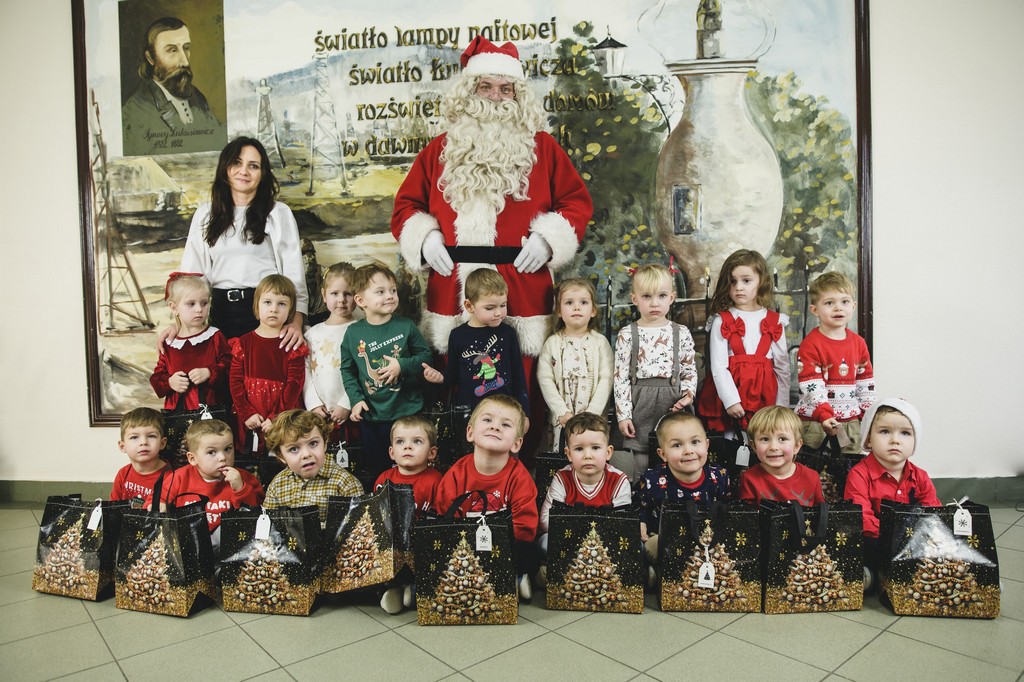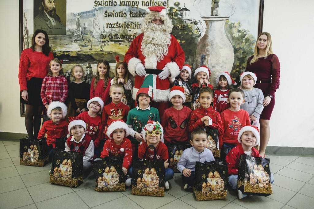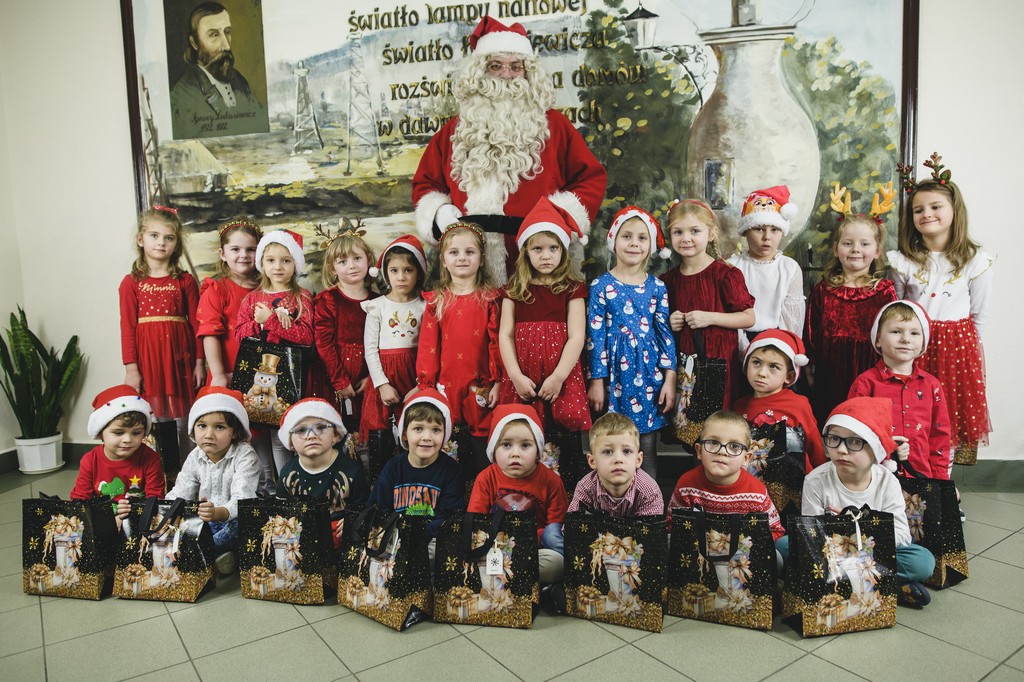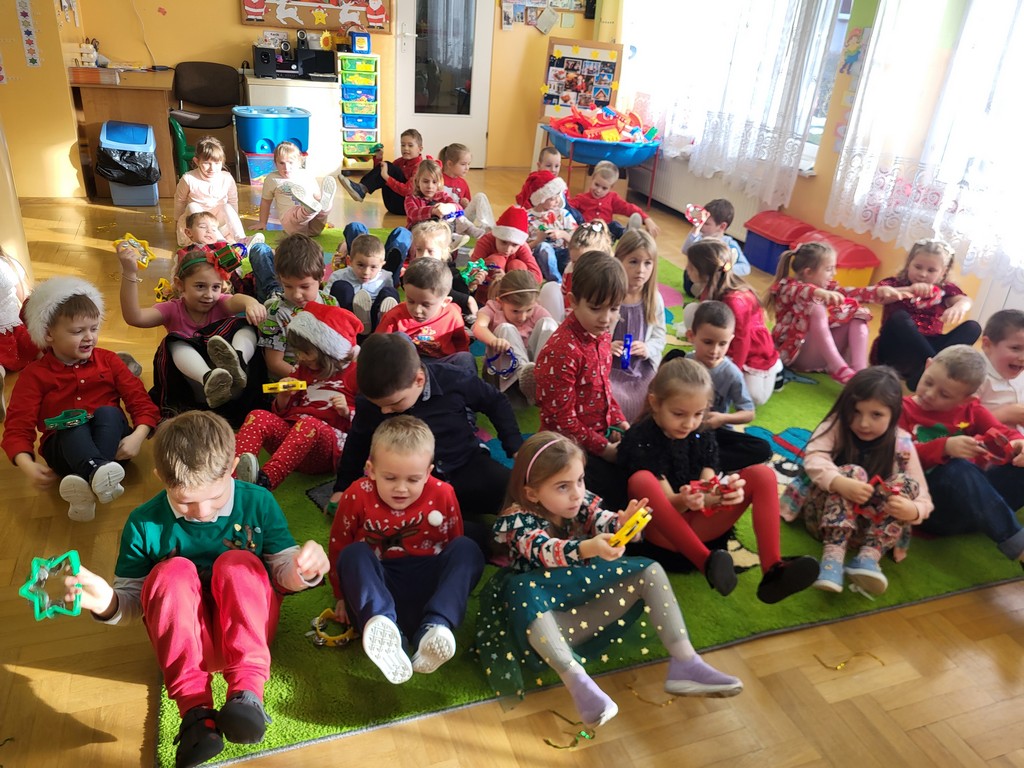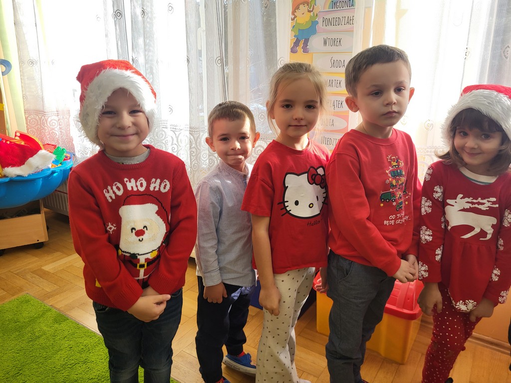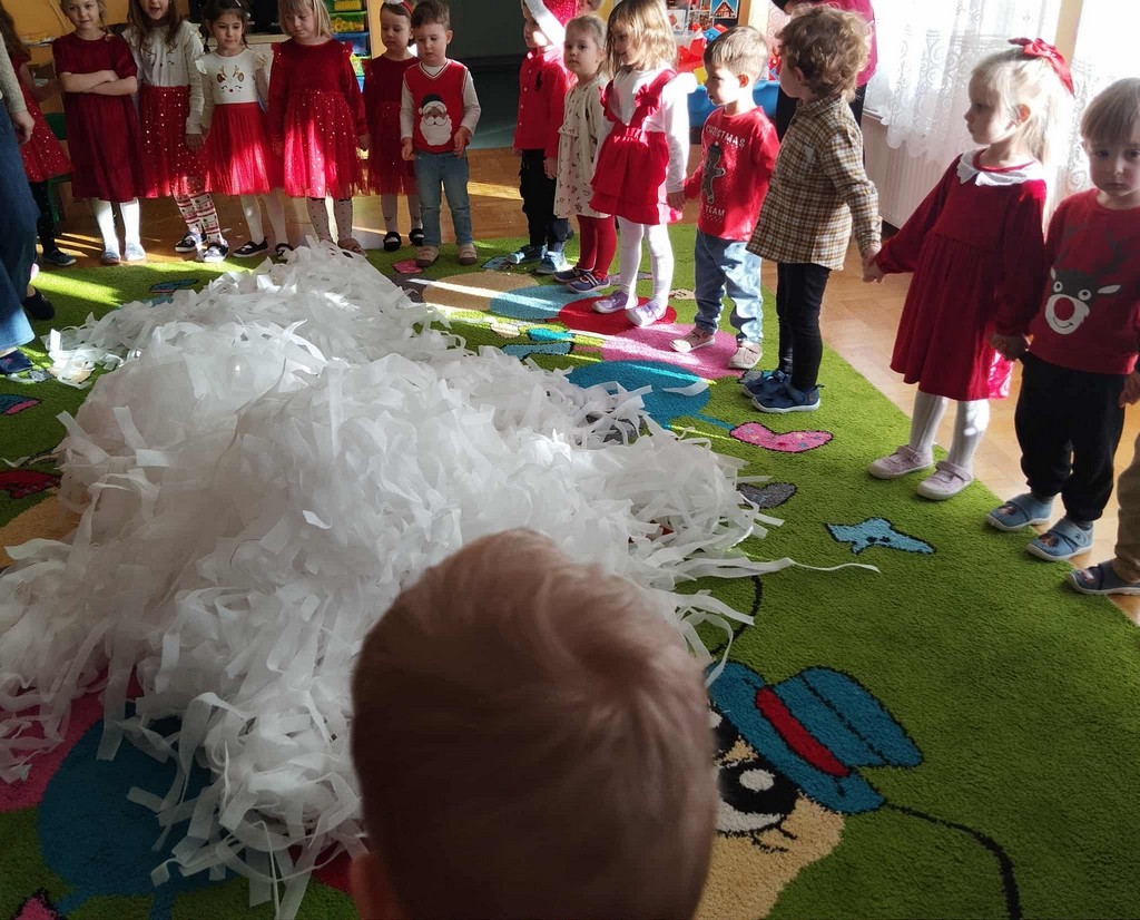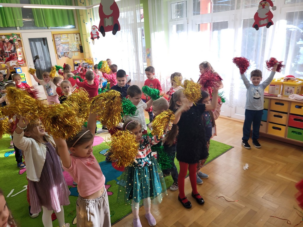 W poniedziałek, 1 grudnia, nasze przedszkole odwiedził wyjątkowy gość – Święty Mikołaj! Zanim pojawił się w salach, dzieci uczestniczyły w radosnej zabawie tanecznej prowadzonej przez panią Elf. Przedszkolaki tańczyły i bawiły się przy rytmach świątecznych utworów. Nie zabrakło zabaw z wykorzystaniem świątecznych rekwizytów: cukierków–grzechotek oraz małych tamburynków, które dodawały energii całej zabawie. Była też bitwa na śnieżki ze „śniegu” zrobionego z pianki poliuretanowej. Gdy do drzwi zapukał Mikołaj, na twarzach dzieci natychmiast zagościł zachwyt. Wspólnie z Mikołajem zatańczyliśmy przygotowany dla niego taniec. Każde dziecko otrzymało od niego piękny prezent, a na pamiątkę tego wyjątkowego spotkania zrobiło sobie z Mikołajem pamiątkowe zdjęcie. To był dzień pełen ciepła, uśmiechu i świątecznej atmosfery, który na długo pozostanie w pamięci naszych przedszkolaków.