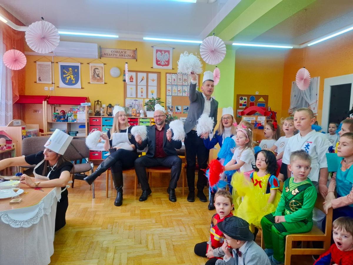 W miniony wtorek w naszym przedszkolu odbyły się super ostatki. Ich celem była wspólna zabawa i gotowanie dla patrona. Wśród zaproszonych gości był pan burmistrz miasta Rafał Kukla oraz przedstawiciele lokalnej społeczności.